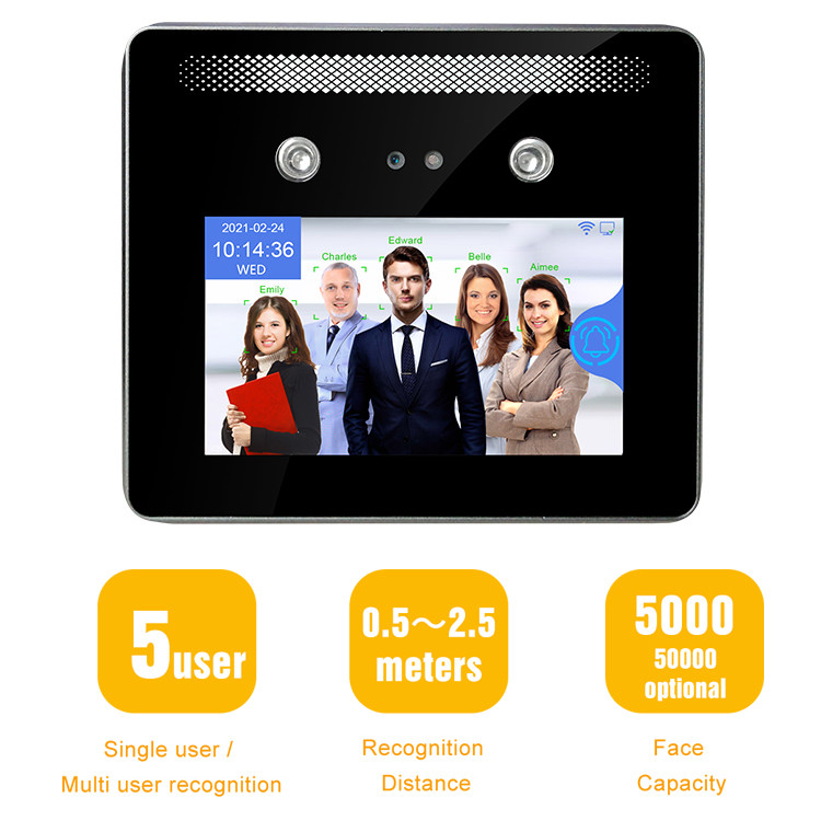 TM-AI05 ist späteste Geräte für Zeitanwesenheits- und -zugriffskontrollanschlüsse. Es nimmt AI- und WDR-Technologien, die enhace die Genauigkeit des Gesichtes in der schlechten hellen Umwelt. Es kann multi Gesicht gleichzeitig erkennen, kann die maximalen 5 Menschen gleichzeitig überprüfen. Es kann den Code der Karte QR und Code der Besucher QR stützen, der gültiger Zeitraum für die Besucher setted. Selbst wenn Sie Maske tragen, können Sie durch dieses eindeutig sein Geräte wenn Sie regiser mit der Maske. wir haben Soem-Dienstleistungen und ODM-Dienstleistungen und werden Ihnen freies sdk und Software für Ihr einfaches Management und das Wiederverkaufen zur Verfügung stellen.